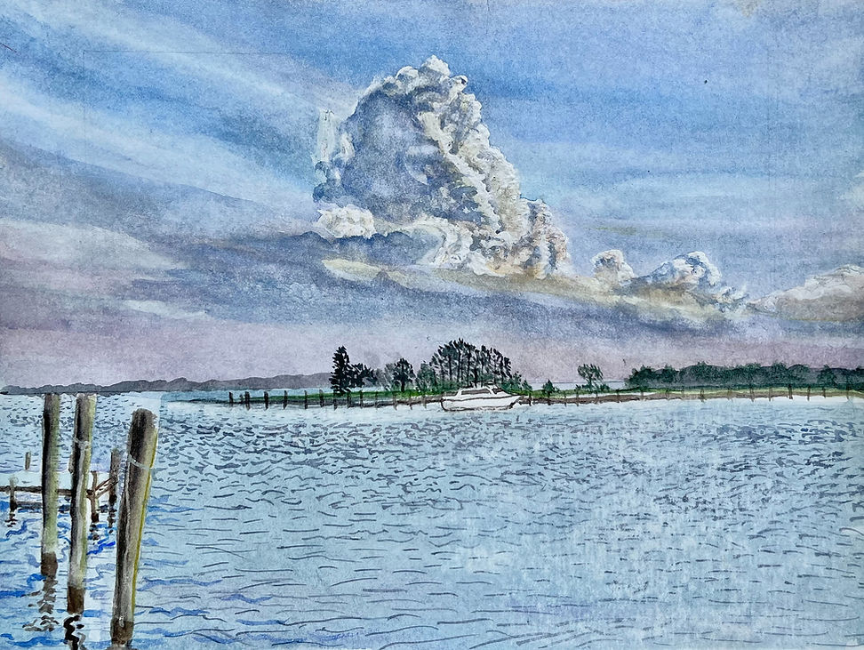 Clouds over Marsh, 2024, Watercolor on Paper, 9" x 12"